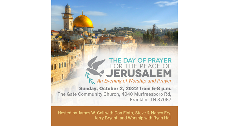 I hope you will join us for The Day of Prayer for the Peace of Jerusalem on October 2, 2022 at The Gate Community Church in Franklin, TN!